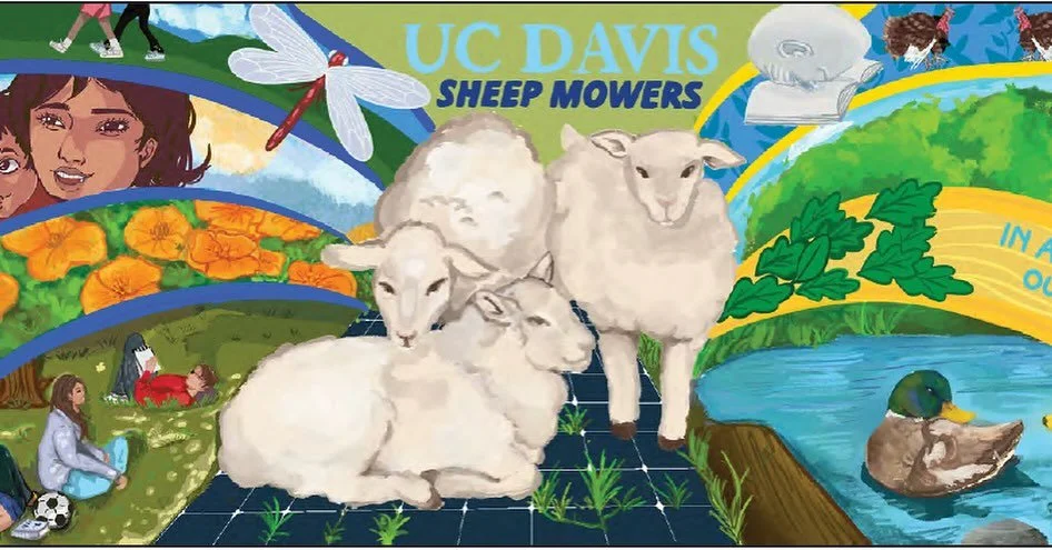 Sheep Shift β a Mural Celebrating UC Davis Sustainability β is turning a 975-square-foot wall across from California Hall into a public art statement about campus decarbonization efforts featuring the Sheepmowers and the Big Shift β UCDβs transformative energy infrastructure project.