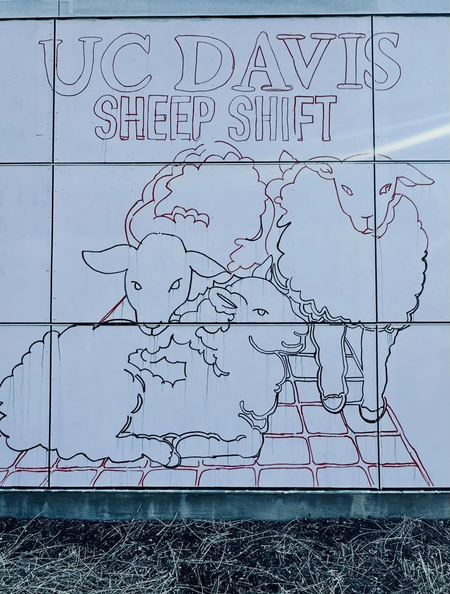 Sheep Shift — a Mural Celebrating UC Davis Sustainability — is turning a 975-square-foot wall across from California Hall into a public art statement about campus decarbonization efforts featuring the Sheepmowers and the Big Shift — UCD’s transformative energy infrastructure project.